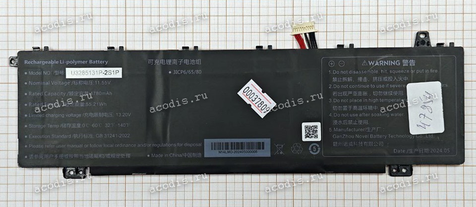 Характеристики АКБ Digma Pro Pactos DN14P5-ADXW02 (576580-3S1P/U3285131P-2S 11.55V 4780mAh 55.21Wh 10PIN 8провод, SP47854)