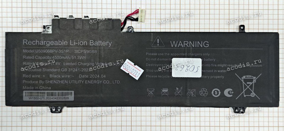 Характеристики АКБ Digma Pro Breve, EVE A5820 (U519161PV-3S1P 11.4V 4500mAh 51,3W 7 проводов 10PIN разъем, SP36520, SP50263) new