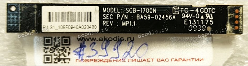 Camera Samsung NP-R522, R520 (p/n SCB-1700N BA59-02456A REV:MP1.1)