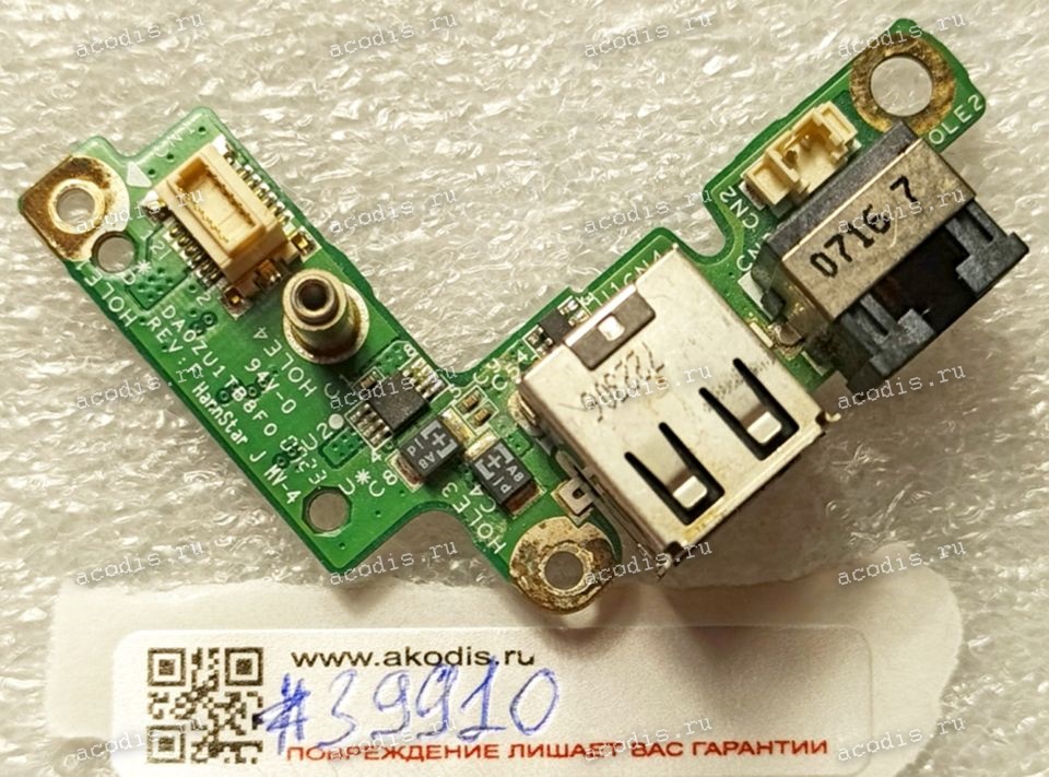 USB & LAN board Acer TravelMate 6292 (p/n DA0ZU1TB8F0 REV:F, 38ZU1UB0000) USB Ethernet LAN Port Board