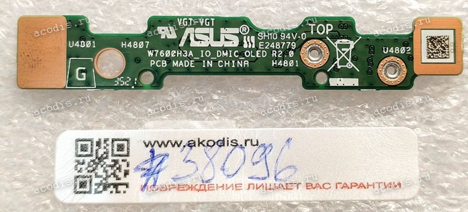 board Asus H7600HM CMOS_BD (p/n: 90NB0VD0-R10010) SH10 94V-0, E248779, W7600H3A_IO_DMIC_OLED R2.0