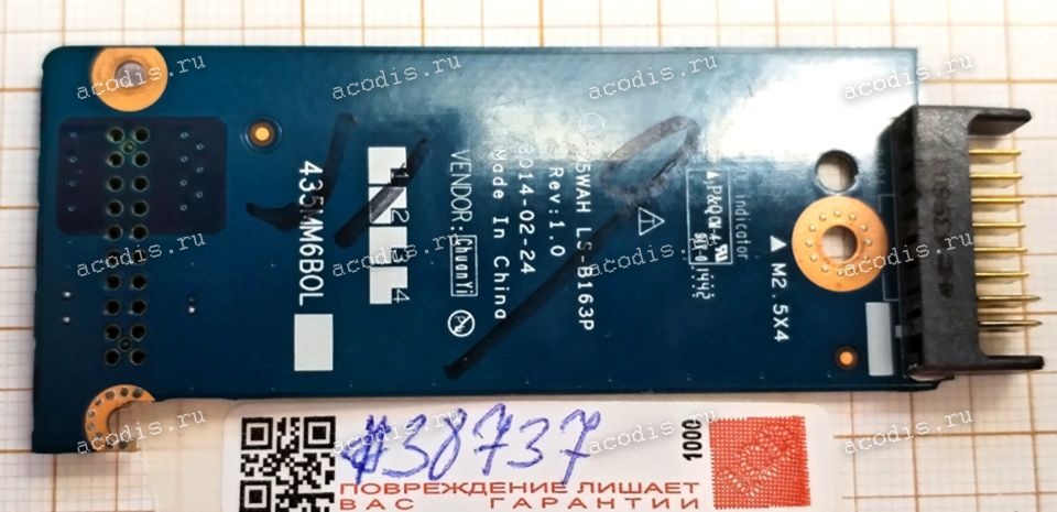 Battery Connector Board Acer Aspire Estensa 2509, E5-511, E5-521, E5-551, E5-571 (p/n Z5WAH LS-B163P, 435MM6B0L) Rev: 1.0 плата удлинителя разъёма аккумуляторной батареи