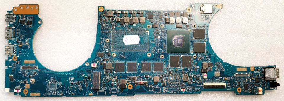 MB BAD - донор Asus UX563FD MAIN BOARD REV. 2. 0, nVidia N17P-G0-OP-A1, 4 чипа SEC K4E6E30 4ECEGCG, 4 чипа MICRON 9TB77 D9VVR, скол на GPU