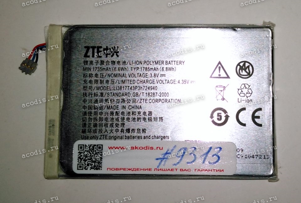 Характеристики АКБ ZTE Grand S V988, Paragon Z753, N988 (3,7v, 1785mAh, 6,8 Wh) Li3817T43P3h724940 new оригинальный