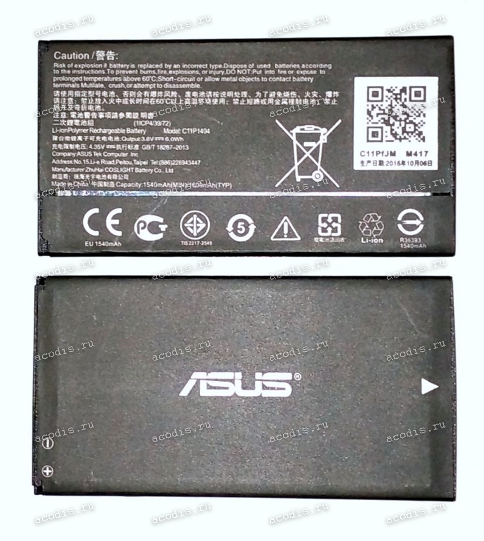 Характеристики АКБ Asus ZenFone 4 A400CG (3.8V 1540mAh 6.0Wh) (Prod. C11P1404, 0B200-01090000)