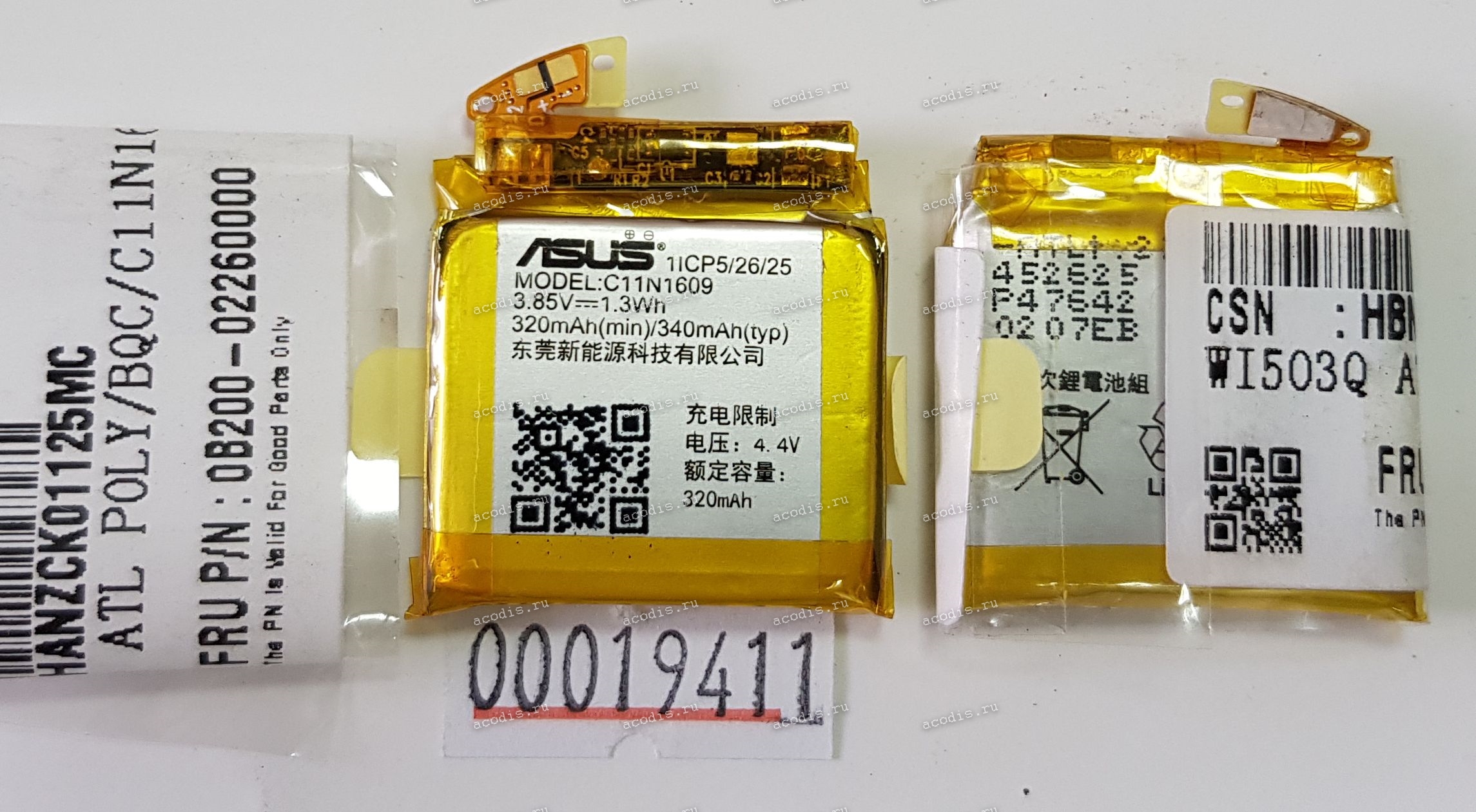 Описание: АКБ Asus ZenWatch 3 (WI503Q) (3,85V 1,3Wh 340mAh) (Prod. C11N1609, 11CP5/26/25, 0B200-02260000) orig
