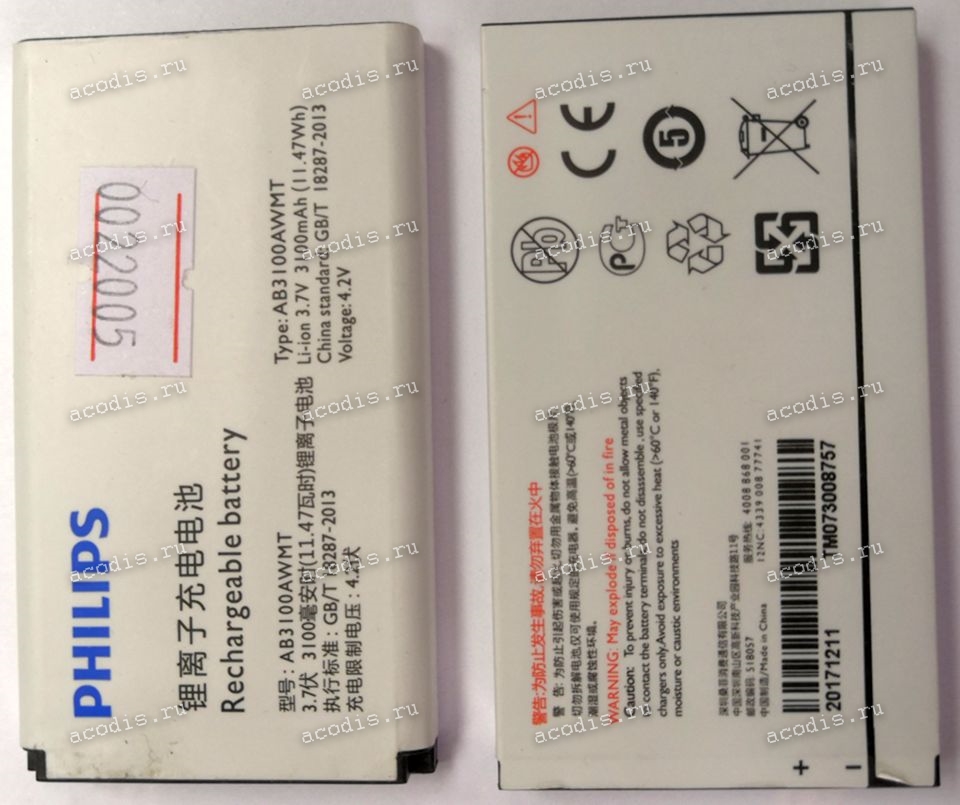 Описание: АКБ Philips E180, E560 AB3100AWMF, AB3100AWMT (3,7v 3000mAh 11,1Wh) 1ICP9/44/68, new оригинальный