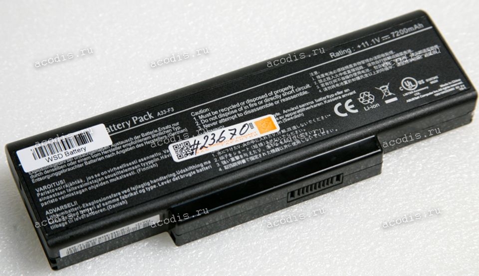 АКБ Asus A9, F2, F3, F7, F96, Pro31Q, S62, S96, X53, Z53, Z9, Z94, Z9400, Z96, Z9600, BenQ Joybook R55, Clevo M661, M665, LG E500, Mitac EL80, MSI MEGABOOK GX600, M1034, M655, M660, M662, M670, M673, M675, M677, VR600 (7200mah) (A33-F3)