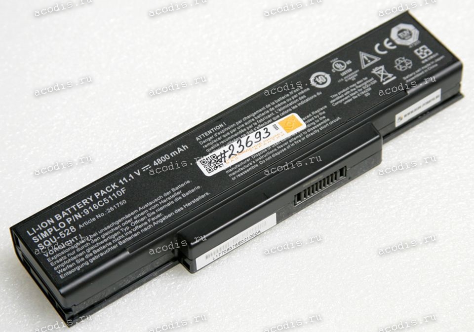 АКБ Asus A9, F2, F3, F7, F96, Pro31Q, S62, S96, X53, Z53, Z9, Z94, Z9400, Z96, Z9600, BenQ Joybook R55, Clevo M660, M661, M665, LG E500, Mitac EL80, MSI MEGABOOK GX600, M1034, M655, M662, M670, M673, M675, M677, VR600 4800mAh (916C5110F, SQU-528)
