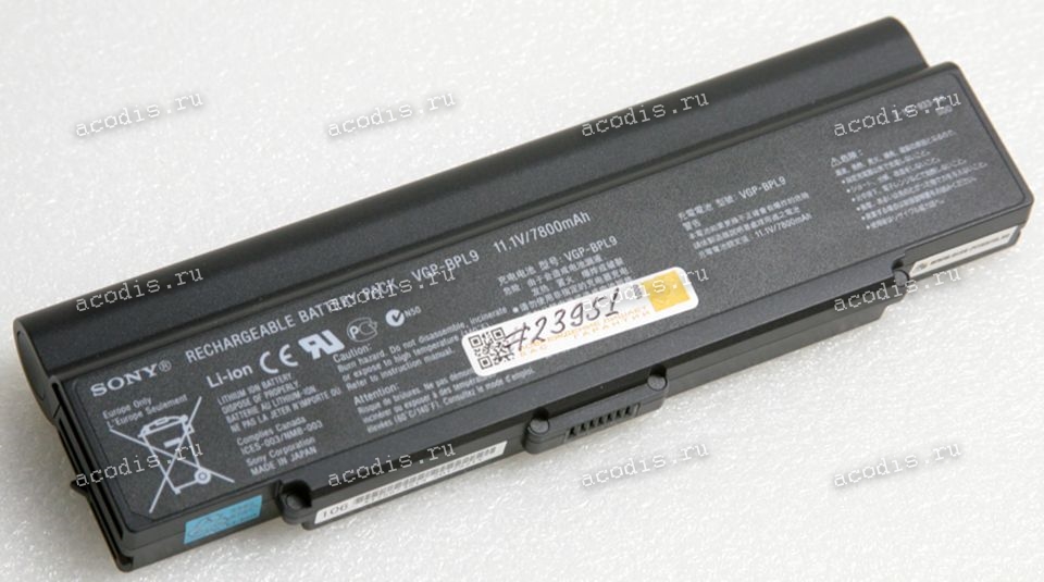 Описание: АКБ Sony VGN-AR41, VGN-AR51, VGN-AR61, VGN-AR71, VGN-CR11, VGN-CR21, VGN-CR31, VGN-CR41, VGN-NR11, VGN-NR21, VGN-NR31, VGN-SZ6R, VGN-SZ7R 7800mAh (VGP-BPS9, VGP-BPL9, VGP-BPS9/S, VGP-BPS10, VGP-BPL10)