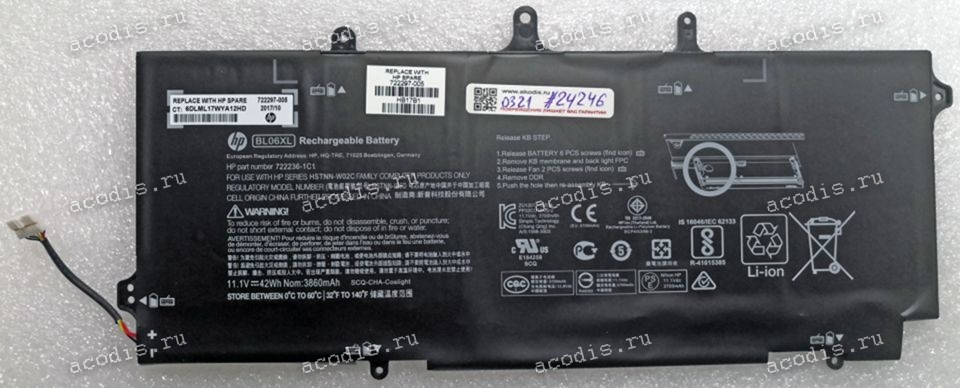 Описание: АКБ HP EliteBook Folio 1040 G0, 1040 G1, 1040 G2, BL06XL (722236-1C1, 722297-005, HSTNN-W02C, HSTNN-IB5D, 722236-171, BL06042XL, 722236-271, HSTNN-DB5D)