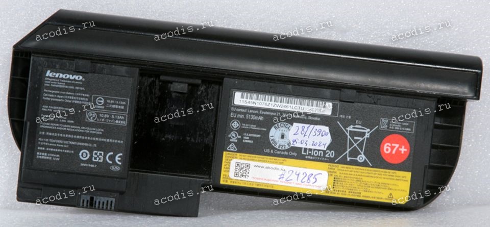 Характеристики АКБ Lenovo ThinkPad 67+ X220t, X230t (tablet) 3438-A52 TP00019B 10,8V 5,13Ah (45N1076, 45N1177, 11S45N1076Z) original с разбора