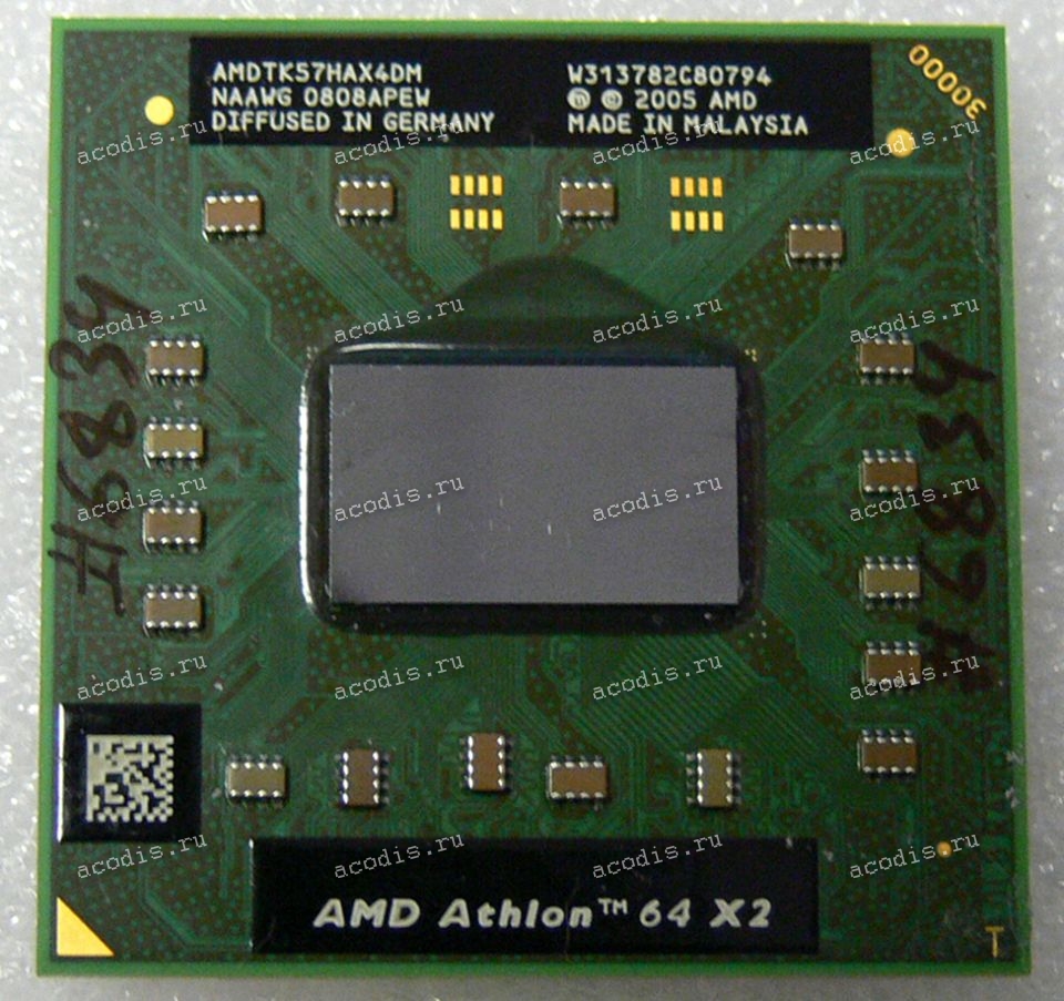Процессор (микропроцессор, CPU) Socket S1G1 (638) AMD Athlon 64 X2 TK-57 "Tyler" (AMDTK57HAX4DM) (2*1.90GHz=200MHz x 9.5, 2*256kB, 65nm, 800 MHz, 1.075/1.10/1.125 V, 638pin, 31W)