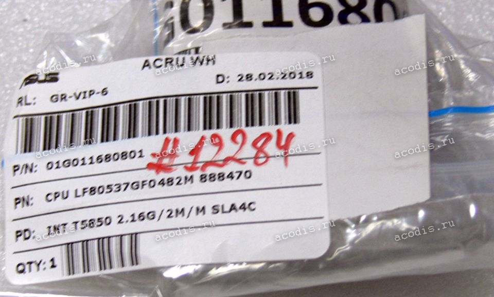 Процессор (микропроцессор, CPU) Socket P (PGA-478) Intel Core 2 Duo Mobile T5850 "Merom-2M" (p/n: SLA4C) (2.00GHz=167MHz x 12, 2Mb, 65nm, 667 MT/s, 0.95–1.175 V, 478pin, 35W) SLA4C (M0), LF80537GF0482M, 01G011680801