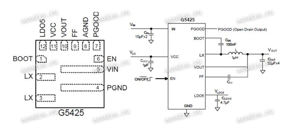 Описание: Микросхема GMT G5425M11U, 5425, G5425, G5425BM11U, G5425B, 5425B QFN-12, QFN12, AQFN3X3-12 FC 8A Syncgronous Step-Down DC/DC