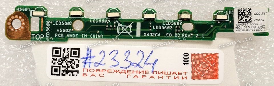Плата светодиодной индикации (LED Driver Board) Asus X502CA LED_BD./AS для Asus X502CA (p/n 90NB00I0-R11000) REV:2.1
