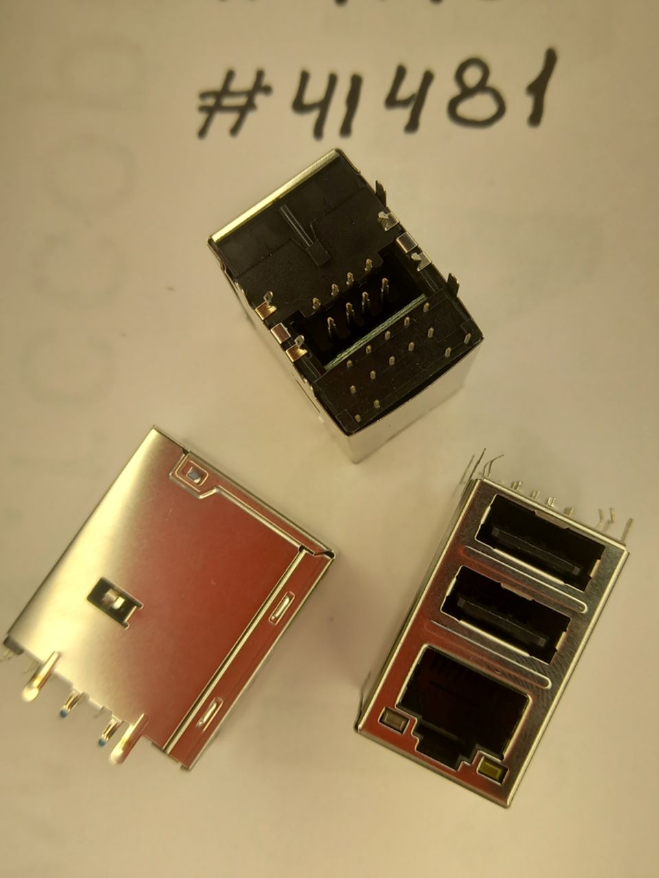 Описание: Combo connector Asus COMBO LAN+2USB2.0 22P G/F (p/n12014-00671400) FOXCONN JFM38U1M-F1VE-4F