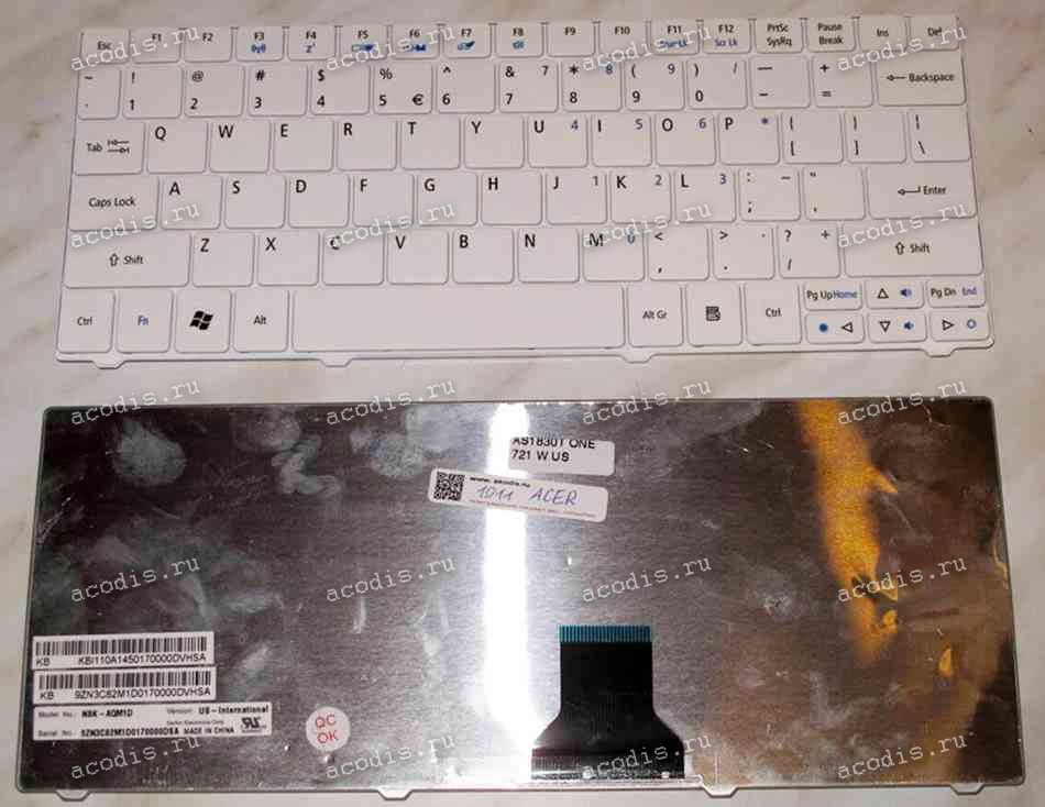 Описание: Keyboard Acer Aspire One 521,721,751,751H,TimeLine 1410,1810,TimelineX 1830,Ferrari 200 (White/Matte/US)