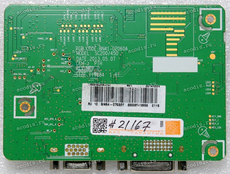 Материнская (основная) плата (motherboard, mainboard) монитора (шасси) Samsung S22C200BW (LS22C20KBW/CI) (BN41-02060A SC200/450) REV. MP1.0 1 чип Samsung SE1269HL-NT