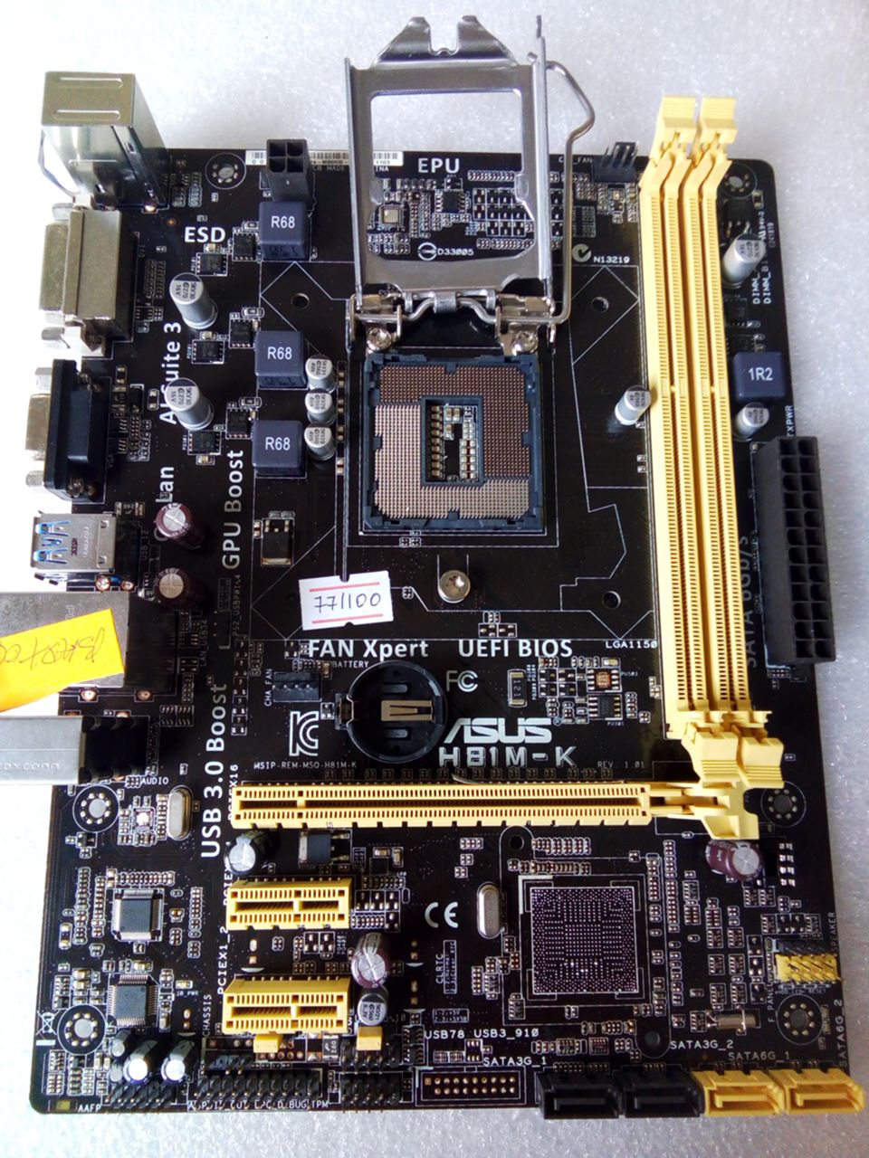 Материнская (основная) плата (motherboard, mainboard) !!!неисправная!!! - донор компонентов Asus H81M-K REV. 1.01 (539548-07024-MB0HI0-E17 1103) MSIP-REM-MSQ-H81M-K снят мост