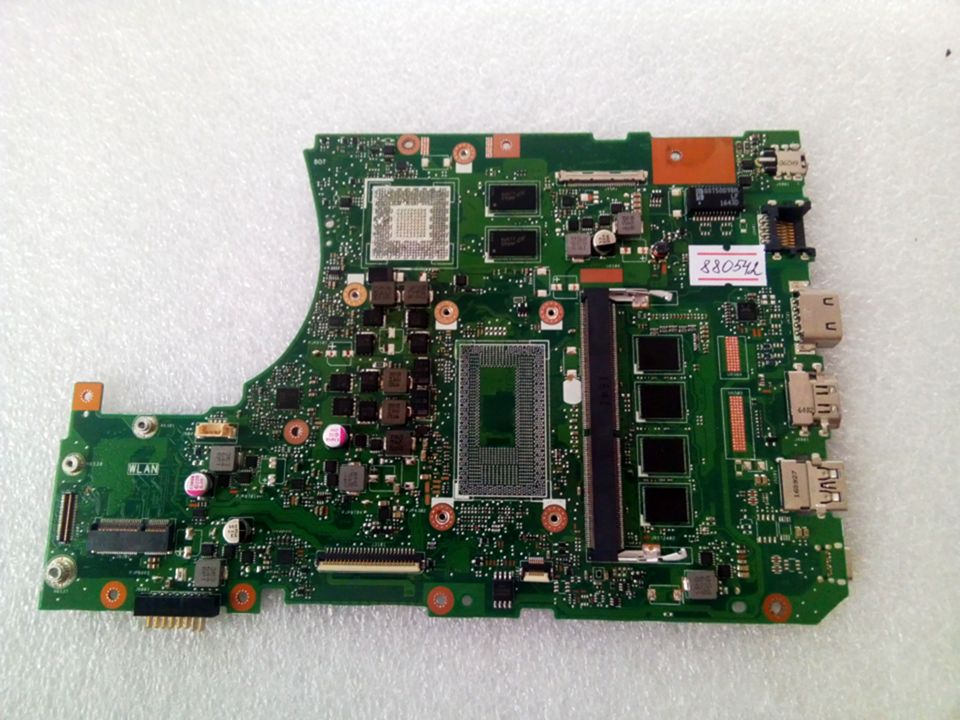 Материнская (основная) плата (motherboard, mainboard) !!!неисправная!!! - донор компонентов Asus X556UQ MAIN_BD._4G (90NB0BH0-R00050, 60NB0BH0-MB4001) X556UV_MB REV. 3.1, 4 чипа Micron 6UN77 D9SMP MT41J256M16LY-091G:N, 8 чипов Micron 6TB77 D9TGG MT40A512M8RH-083E:B - снято CPU и GPU