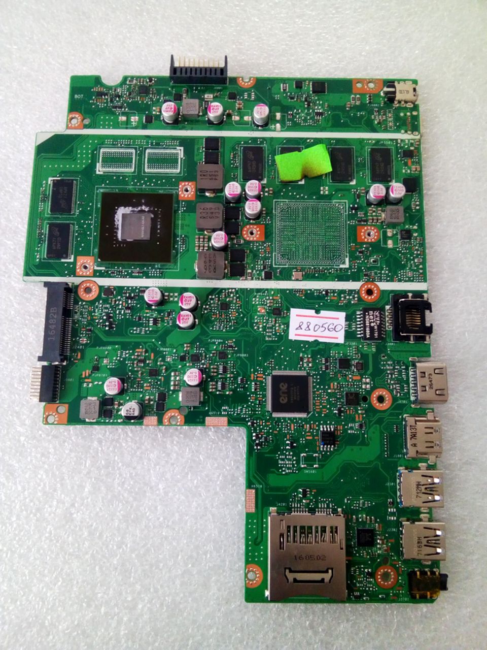 Материнская (основная) плата (motherboard, mainboard) !!!неисправная!!! - донор компонентов Asus X541SC MB._4G (90NB0CI0-R00010, 60NB0CI0-MB1800) X541SC REV. 2.0, nVidia N15V-GL1-KA-A2, 2 чипа Micron 6PK77 D9PTD MT41J128M16JT-093G:K, 2 чипа Micron 6PKI7 D9PTD MT41J128M16JT-093G:K, 8 чипов Micron 6XP77D9SHD MT41K256M16TW-107:P - снято CPU