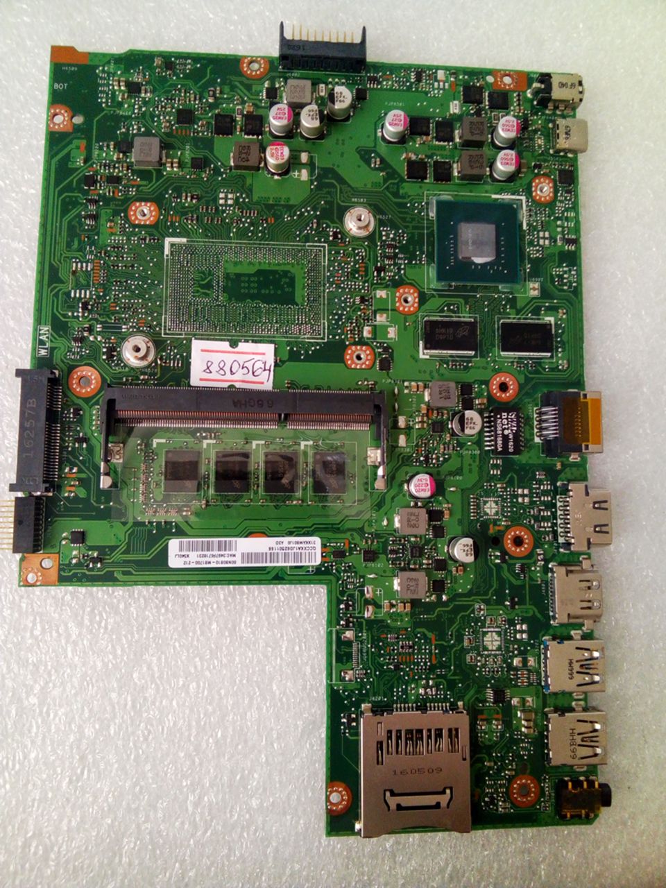 Материнская (основная) плата (motherboard, mainboard) !!!неисправная!!! - донор компонентов Asus X540LJ MB._4G (90NB0B10-R000A0, 60NB0B10-MB1700-212) X540LJ REV. 2.1, nVidia N16V-GM-B1, 4 чипа Micron 6HKI7 D9PTD MT41J128M16JT-093G:K, 8 чипов Micron 6MP45 D9SGQ MT41K512M8DA-107:P - снято CPU