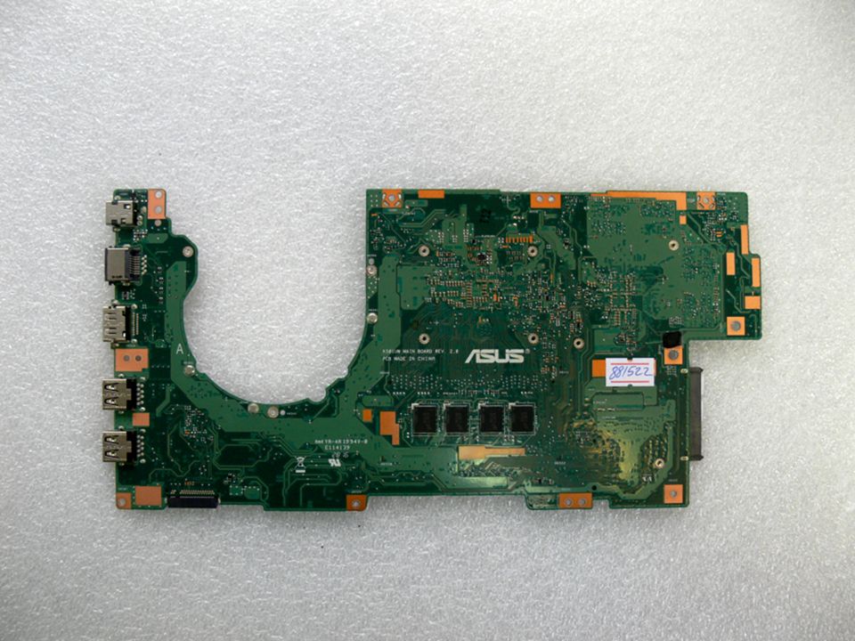 Материнская (основная) плата (motherboard, mainboard) !!!неисправная!!! - донор компонентов Asus K501UQ MAIN_BD._4G (90NB0BP0-R00040, 60NB0BP0-MB1003-201) K501UW REV. 2.0, nVidia N16S-GT1-KB-A2, 2 чипа Micron 6IA47 D9SXC MT51J256M32HF-60:A, 8 ЧИПА Micron 6TB77 D9TCG MT41K64M16TW-107 AUT:J- снято CPU