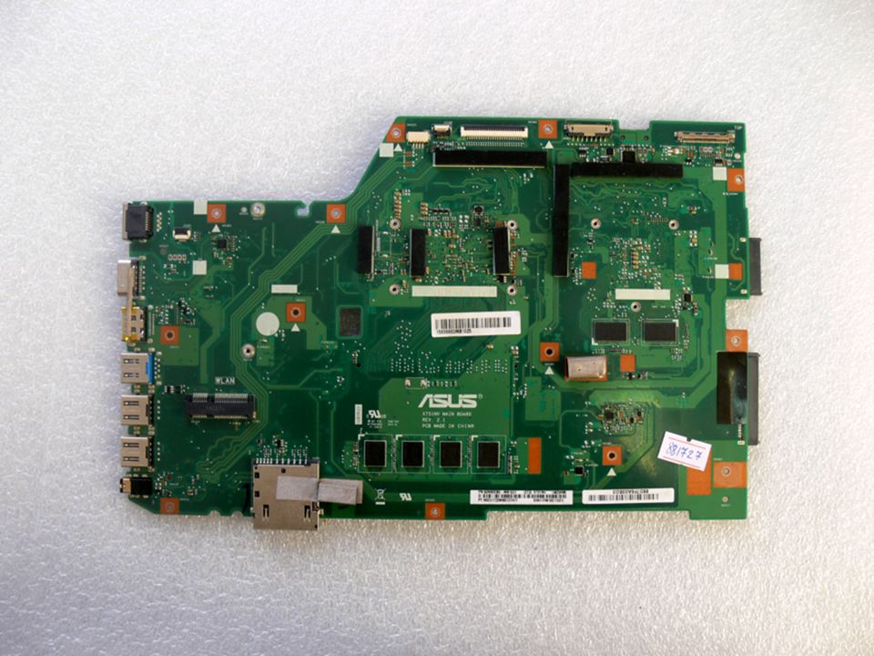 Материнская (основная) плата (motherboard, mainboard) !!!неисправная!!! - донор компонентов Asus X751NV MB._4G (90NB0EB0-R00010, 60NB0EB0-MB1031 (213) X751NV REV. 2.1, nVidia N16V-GMR1-S-A2, 4 чипа Samsung K4W2G1646Q-BC1A, 8 чипов Micron 7DP45 D9SGQ MT41K512M8DA-107:P - снято CPU