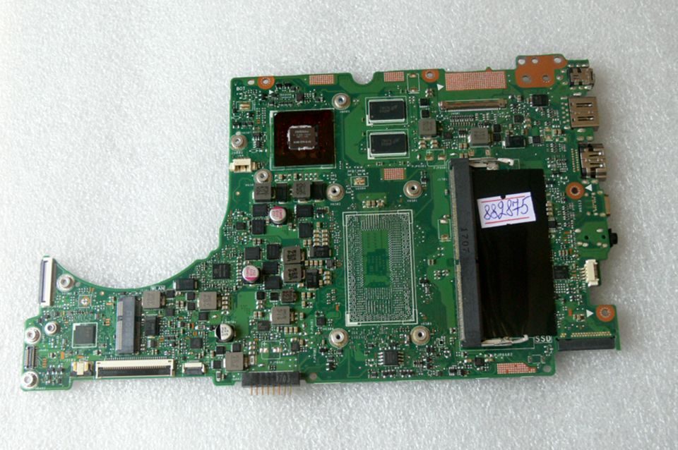 Материнская (основная) плата (motherboard, mainboard) !!!неисправная!!! - донор компонентов Asus UX310UQK MB._4G (90NB0CL0-R00060, 60NB0CL0-MB1901 (202)) UX310UV REV. 2.0, nVidia N16S-GTR-S-A2, 4 чипа Micron 7BN75 D9SMP MT41J256M16LY-091G:N, 8 чипов Micron 7BB75 D9TGG MT40A512M8RH-083E:B, снято CPU