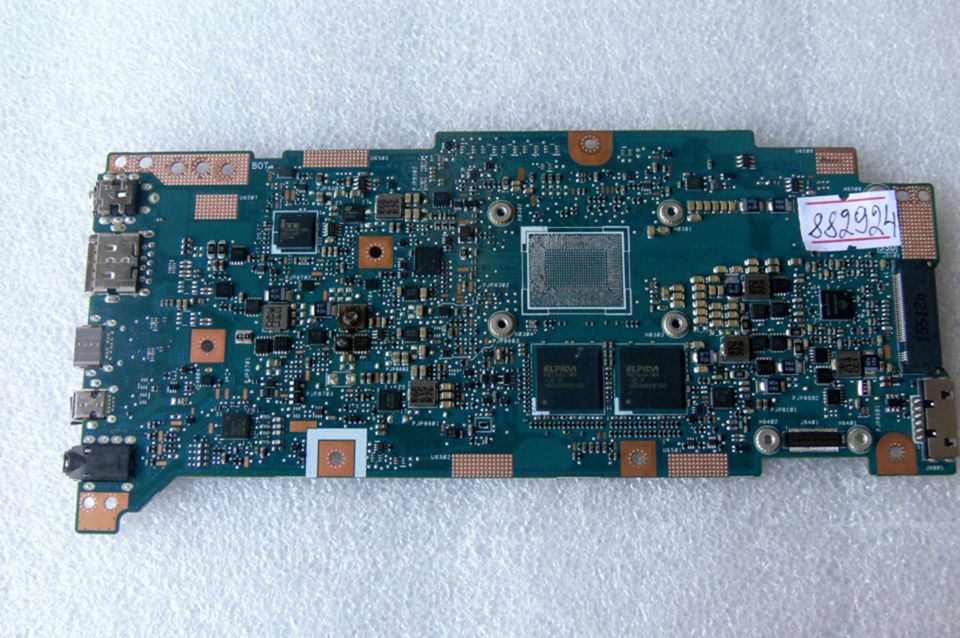 Материнская (основная) плата (motherboard, mainboard) !!!неисправная!!! - донор компонентов Asus UX360CA MB._8G (90NB0BA0-R00040, 60NB0BA0-MB2230-212) UX360CA REV. 2.1, 2 чипа ELPIDA FB164A1MA-JD-F1618RR01100, снято CPU