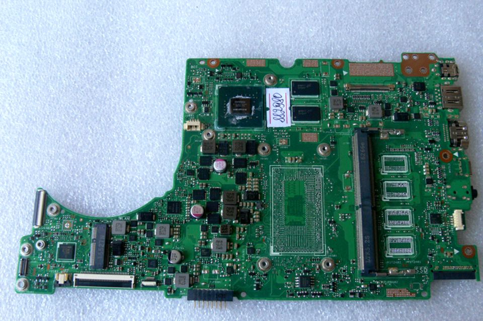 Материнская (основная) плата (motherboard, mainboard) !!!неисправная!!! - донор компонентов Asus UX310UQ MB._8G (90NB0CL0-R00010, 60NB0CL0-MB1201 (203)) UX310UV REV. 2.0, nVidia N16S-GTR-S-A2, 4 чипа Micron 6NN47 D9SMP MT41J256M16LY-091G:N, снято CPU