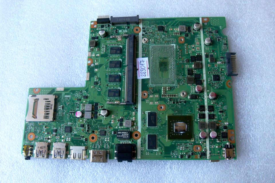 Материнская (основная) плата (motherboard, mainboard) !!!неисправная!!! - донор компонентов Asus X541UV MB._8G (90NB0CG0-R03300, 60NB0CG0-MB3300 (201)) X541UV REV. 2.0, nVidia N16V-GMR1-S-A2, 2 чипа Micron 6HN77 D9SMP MT41J256M16LY-091G:N, 2 чипа Micron 6GN77 D9SMP MT41J256M16LY-091G:N, 8 чипов SEC 619 K4A8G08, снято CPU