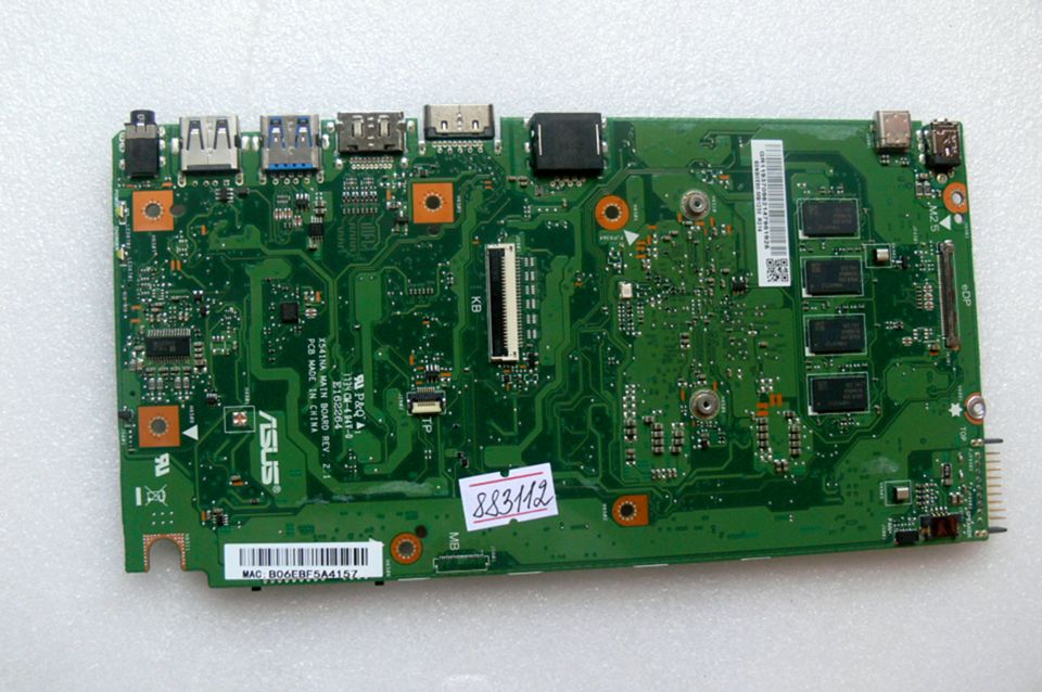 Материнская (основная) плата (motherboard, mainboard) !!!неисправная!!! - донор компонентов Asus X541NA MB._4G (90NB0E80-R00010, 60NB0E80-MB1230 R214) X541NA REV. 2.1, 4 чипа SEC 701 K4B4G16, 4 чипа SEC 625 K4B4G16, снято CPU