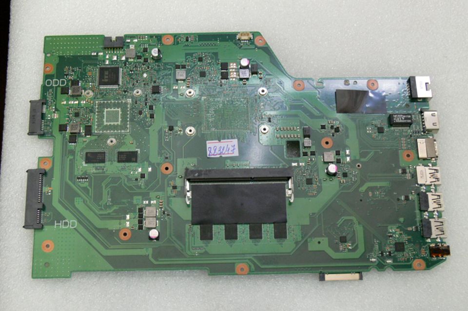 Материнская (основная) плата (motherboard, mainboard) !!!неисправная!!! - донор компонентов Asus X751NA MAIN_BD._4G (90NB0EA0-R00010, 60NB0EB0-MB1031 (213)) X751NV REV. 2.1., 4 чипа SEC 710 K4W4G16, 8 чипов Micron 7EP45 D9SGQ MT41K512M8DA-107:P - снято CPU, GPU