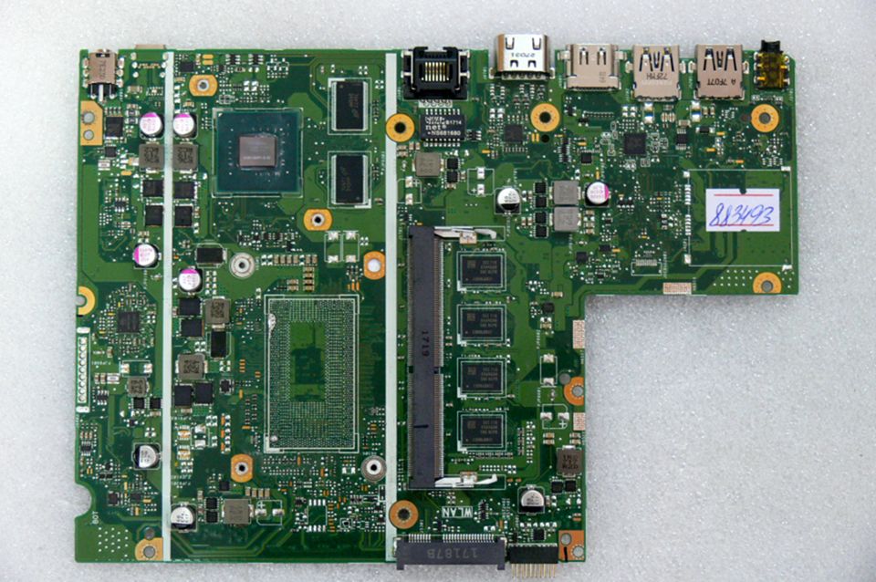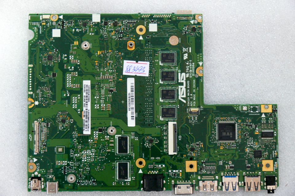 Материнская (основная) плата (motherboard, mainboard) !!!неисправная!!! - донор компонентов Asus X541UV MB._4G (90NB0CG0-R01500, 60NB0CG0-MB1500 (200)) X541UV REV. 2.0., nVidia N16V-GMR1-S-A2, 4 чипа D9SMP MT41J256M16LY-091G:N, 8 чипов SEC 716 K4A4G08 - снято CPU