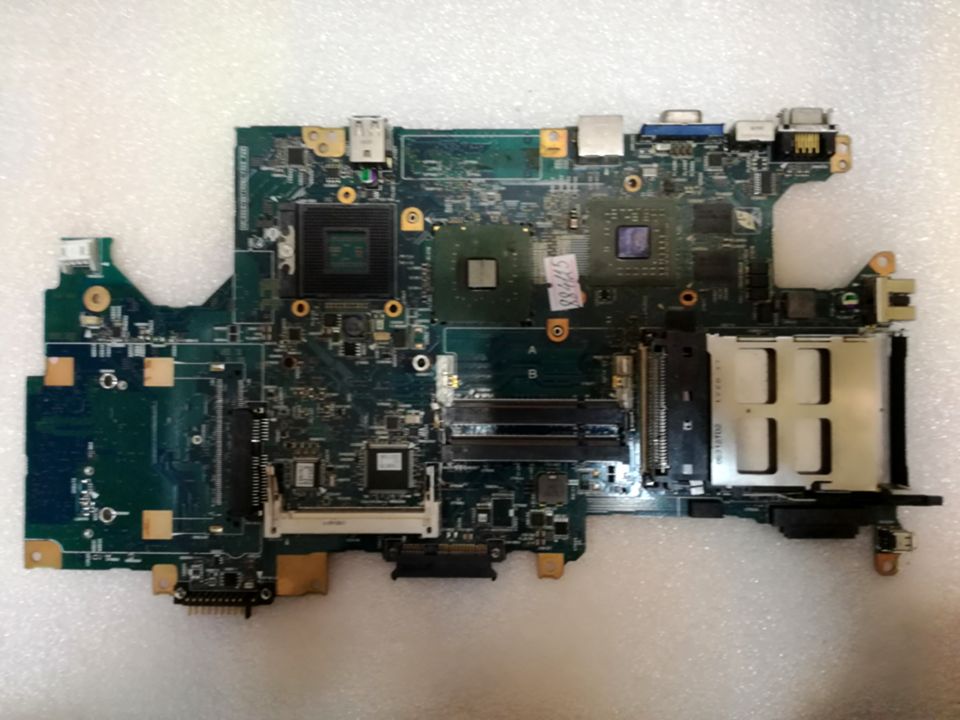 Материнская (основная) плата (motherboard, mainboard) !!!неисправная!!! - донор компонентов Toshiba Qosmio F30-141 (FUHSY2 A5A001825010) Intel SL8YB NH82801GBM, Intel SL8Z4 QG82945PM, nVidia GF-GO7600-N-A2, 3 чипа Samsung K4J52324QC-BC20 - снято что-то