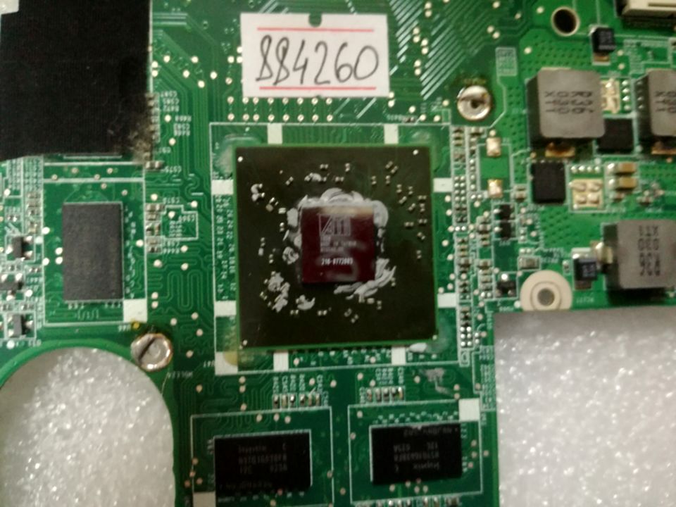 Характеристики MB BAD - донор Lenovo IdeaPad Y560, (FRU: 11S11012136Z) DAKL3AMB8E0 REV: E, ATI 216-0772003, 8 чипов Hynix H5TQ1G63BFR - снято что-то