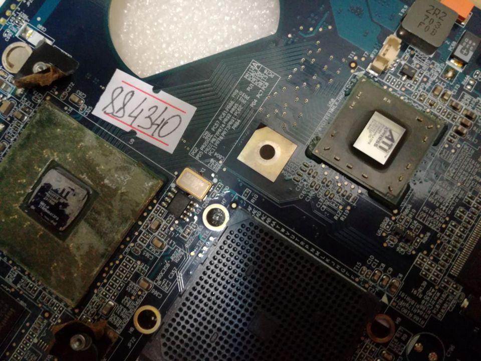 MB BAD - донор Acer Aspire 5110, 5111, 5112, 5113 HCW50 LA-3151P REV: 2A, ATI 218S4RBSA12G IXP460 SB460, ATI 215NSA4ALA12FG, ATI 216PNAKA13FG, 4 чипа Hynix HY5PS561621A - снято что-то