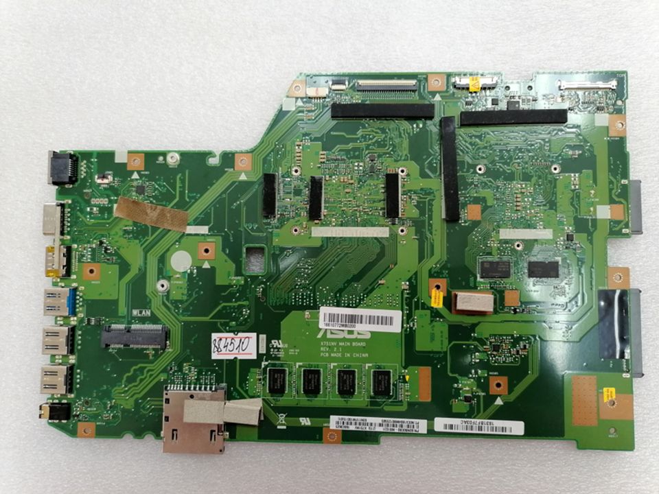 Материнская (основная) плата (motherboard, mainboard) !!!неисправная!!! - донор компонентов Asus X751NA MAIN_BD._4G (90NB0EA0-R00010, 60NB0EB0-MB1031 (213)) X751NV REV. 2.1, nVidia N16V-GMR1-S-A2, 4 чипа K4W4G16 SEC 746, 8 чипов SK hynix H5TC4G830FR - снято CPU