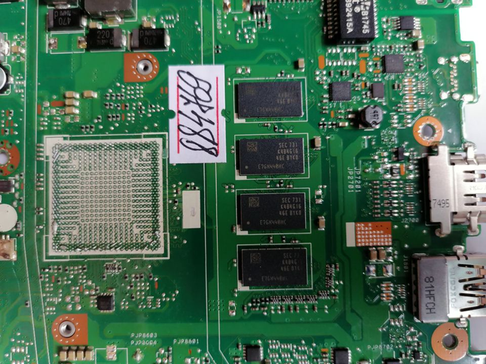 MB BAD - донор Asus E402WA MB._4G (60NB0HC0-MB3101 (210)) E402WA REV. 2.1, 8 чипов SEC 731 K4B4G16 - снято CPU