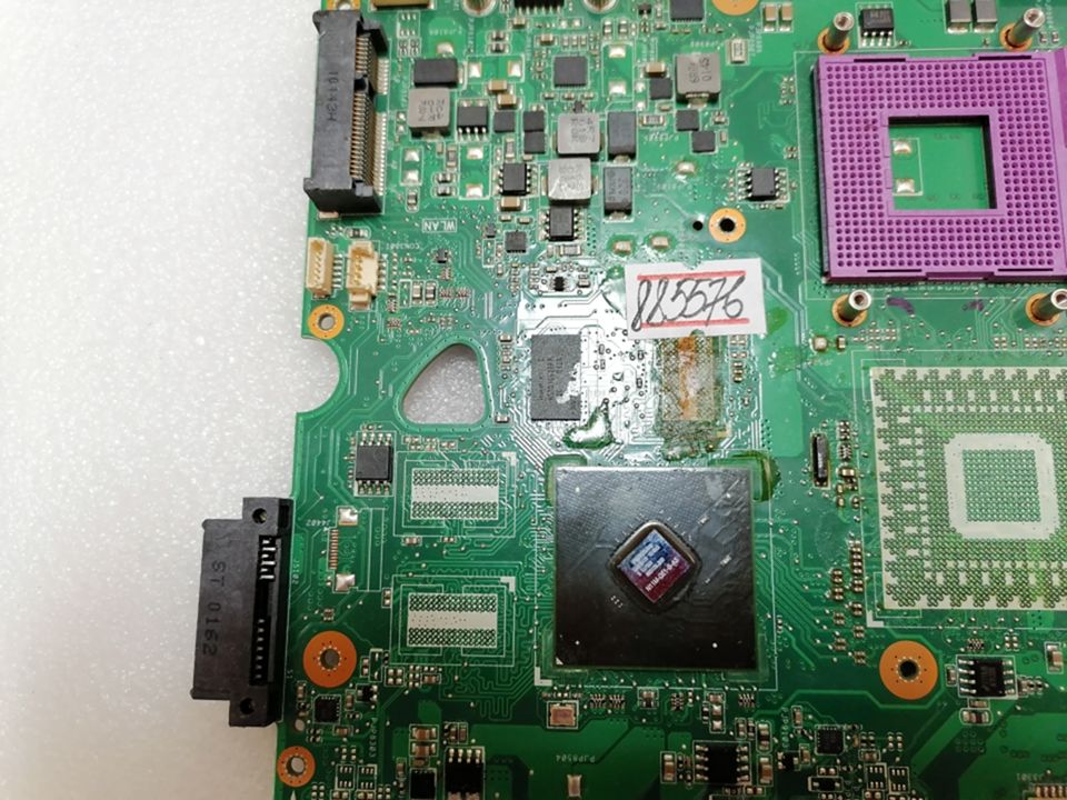 Материнская (основная) плата (motherboard, mainboard) !!!неисправная!!! - донор компонентов Asus K40ID MB_0M REV. 2.0., nVidia N11M-GE1-B-A3, 3 чипа Hynix H5TQ1G63BFR