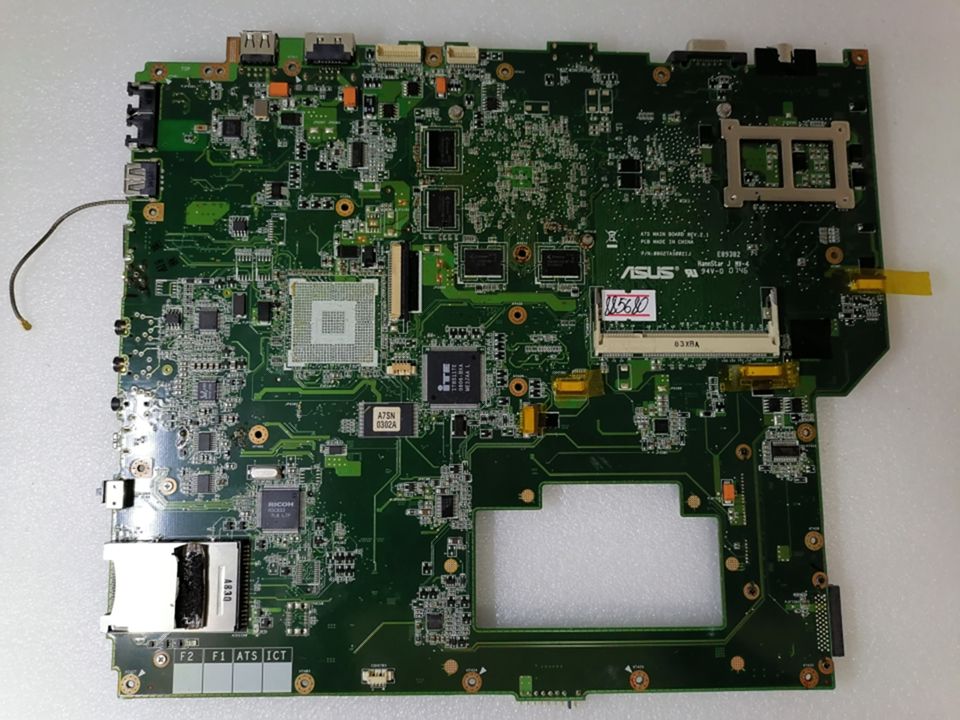 Материнская (основная) плата (motherboard, mainboard) !!!неисправная!!! - донор компонентов Asus A7S MAIN_BD._0M/PENRYN/NB9/AS R2.1(V256M-INF) (EN*63297) (60-NQEMB1000-A12) A7S P/N:08G27AS0021J REV:2.1., Intel LE82PM965 SLA5U, 4 чипа Qimonda HYB18H512321BF-14 - снято GPU