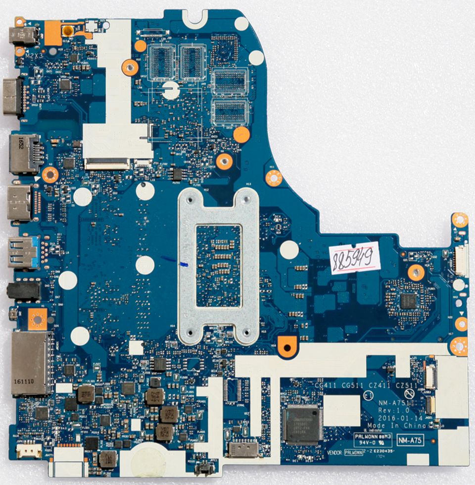 Характеристики MB BAD - под восстановление Lenovo IdeaPad 310-15ISK (P/N: 5B20N87019) CG411 CG511 CZ411 CZ511 NM-A751 REV: 1.0., Intel Core i3 6006U - SR2UW, nVidia N16V-GM-B1, 4 чипа SEC 704 K4W4G16, 4 чипа Micron D9SRL