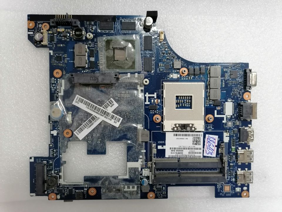 Описание: MB BAD - донор Lenovo IdeaPad G580 QIWG5_G6_G9 LA-7981P (11S90001747Z) QIWG5_G6_G9 LA-7981P REV:1.0, Intel SLJ8E, nVidia N13P-GLR-A1, 8 чипов Samsung 237 K4W2G1646E-BC11