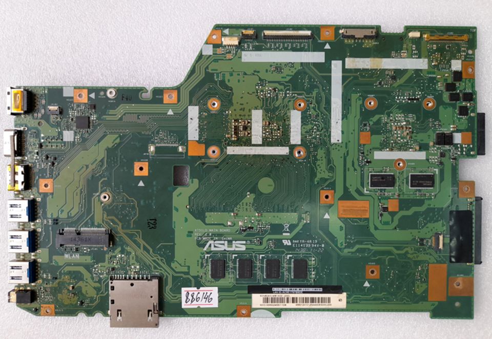 MB BAD - донор Asus X751LD MAIN_BD._4G/_/AS (V2G/TOUCH) (90NB04I1-R00080, 60NB04I0-MB1A02) X751LD REV. 2.0., nVidia N15V-GM-S-A2, 4 чипа Samsung K4W4G16460 BC1A, 8 чипов K4B4G08460 SEC 422 - снято CPU