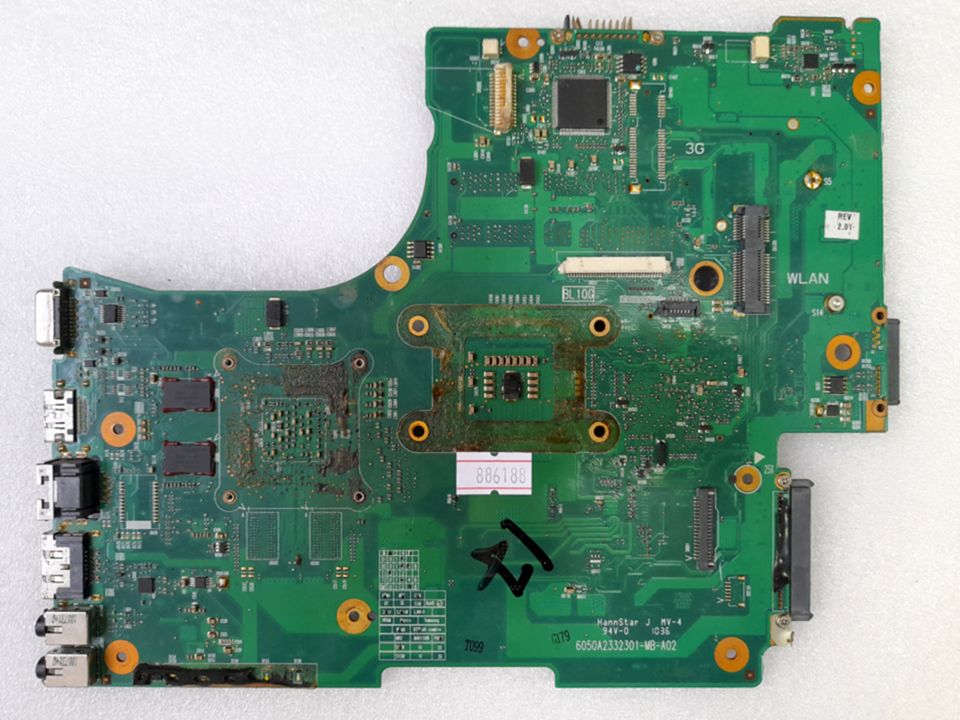 Материнская (основная) плата (motherboard, mainboard) !!!неисправная!!! - донор компонентов Toshiba Satellite L655 (1310A2332306 REV: 2.01) 6050A2332301-MB-A02, 4 чипа Hynix H5TQ1G63BFA 12C 032A