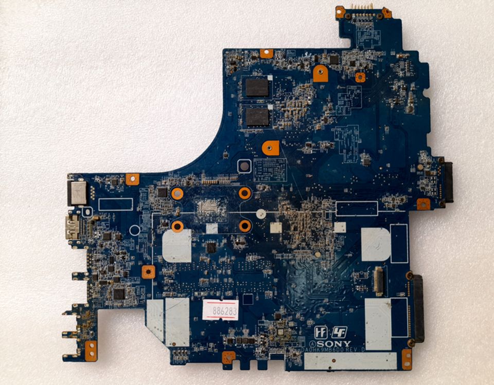 Материнская (основная) плата (motherboard, mainboard) !!!неисправная!!! - донор компонентов Sony SVF152 (?) DA0HK9MB6D0 REV: D MODEL: HK9, (nVidia N14P-GV2-S-A1), (SR0XL нет КЗ по USB), 4 ЧИПА SAMSUNG K4W4G1646B-HC11 340