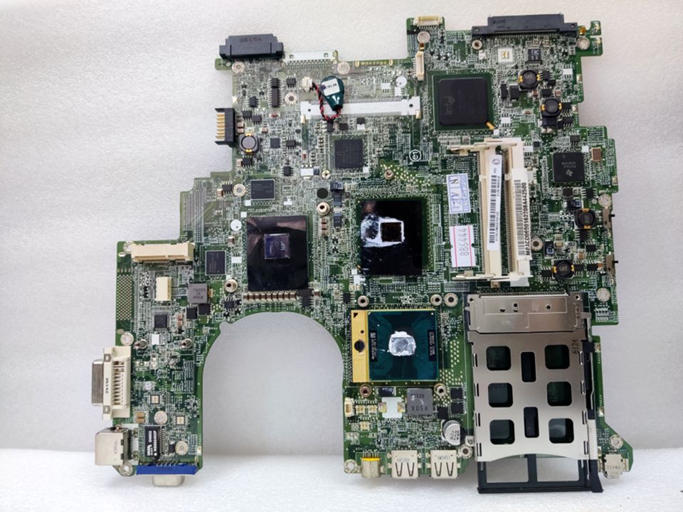 Материнская (основная) плата (motherboard, mainboard) !!!неисправная!!! - донор компонентов Acer Aspire 5670 (31ZB1MB00U4) DA0ZB1MB8H0 REV: H, INTEL SL8YB, ATI ?, INTEL SL8VQ, SL8Z4, 4 чипа INFINEON HYB18T51216BF-25