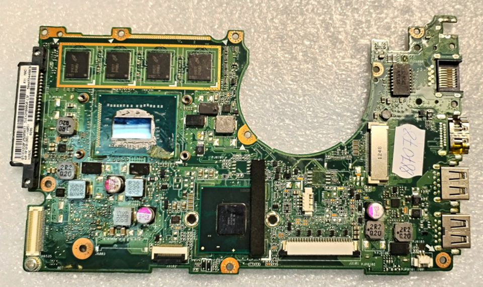 MB BAD - под восстановление Asus X202E (60-NFQMB1B01-(A05), 31EX2MB00G0) X202E MAIN BOARD REV. 2. 0, Intel SR0N9, Intel SLJ8E, 4 чипа MICRON 2YEI7 D9QBJ, 4 чипа MICRON 2YE22 D9QBJ